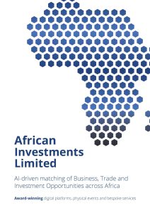 African Investments Limited is exclusively dedicated to facilitating African trade, investment and business partnerships. Our award-winning digital platforms leverage artificial intelligence and advanced emerging technologies to efficiently match and connect Africa-focused enterprises at scale, across the continent and globally, in a highly cost-effective manner.