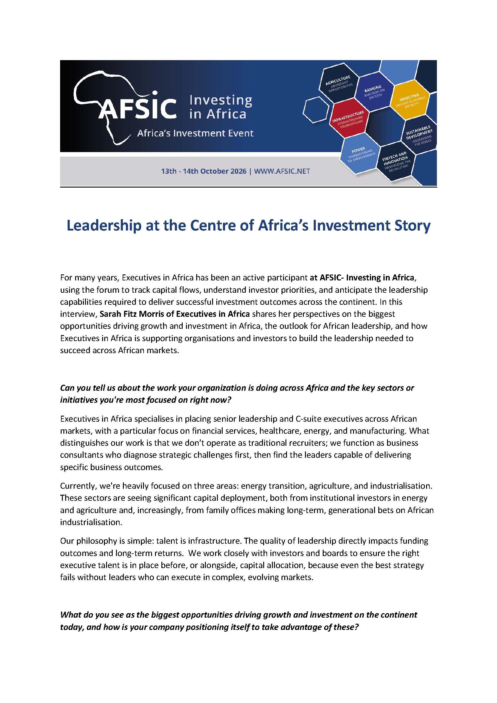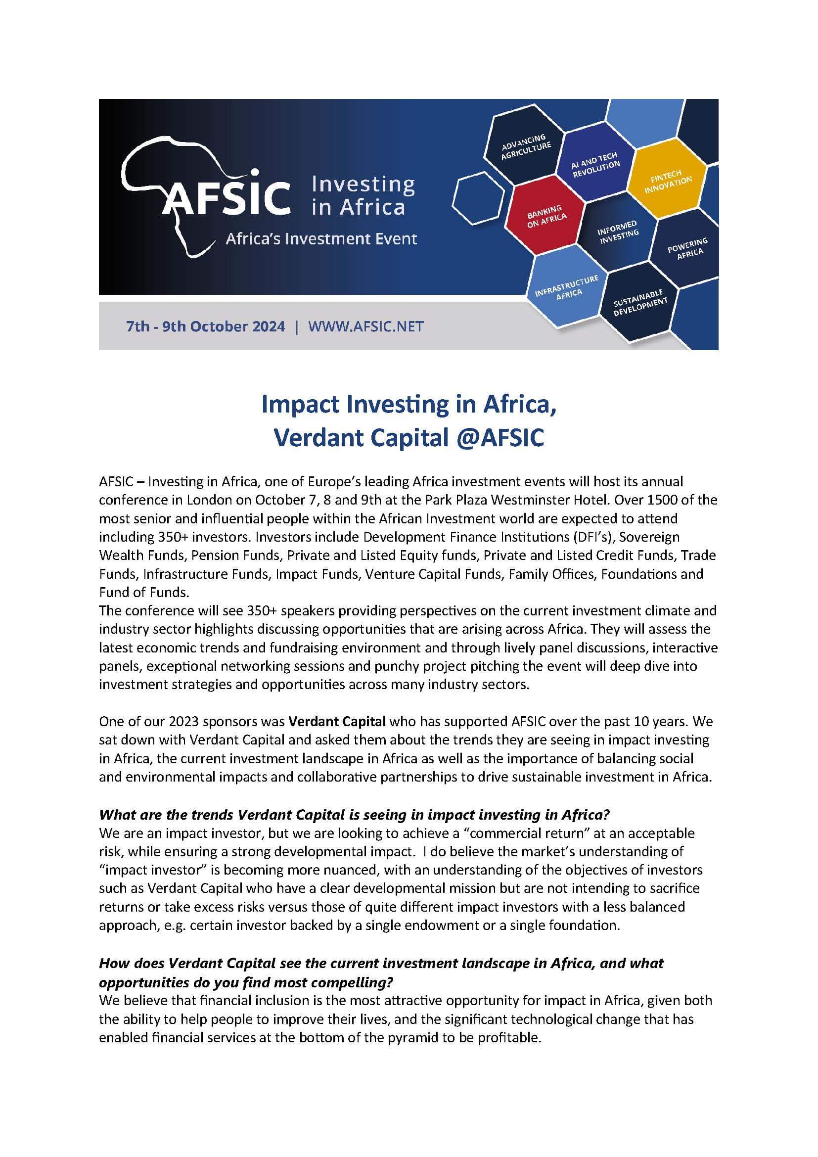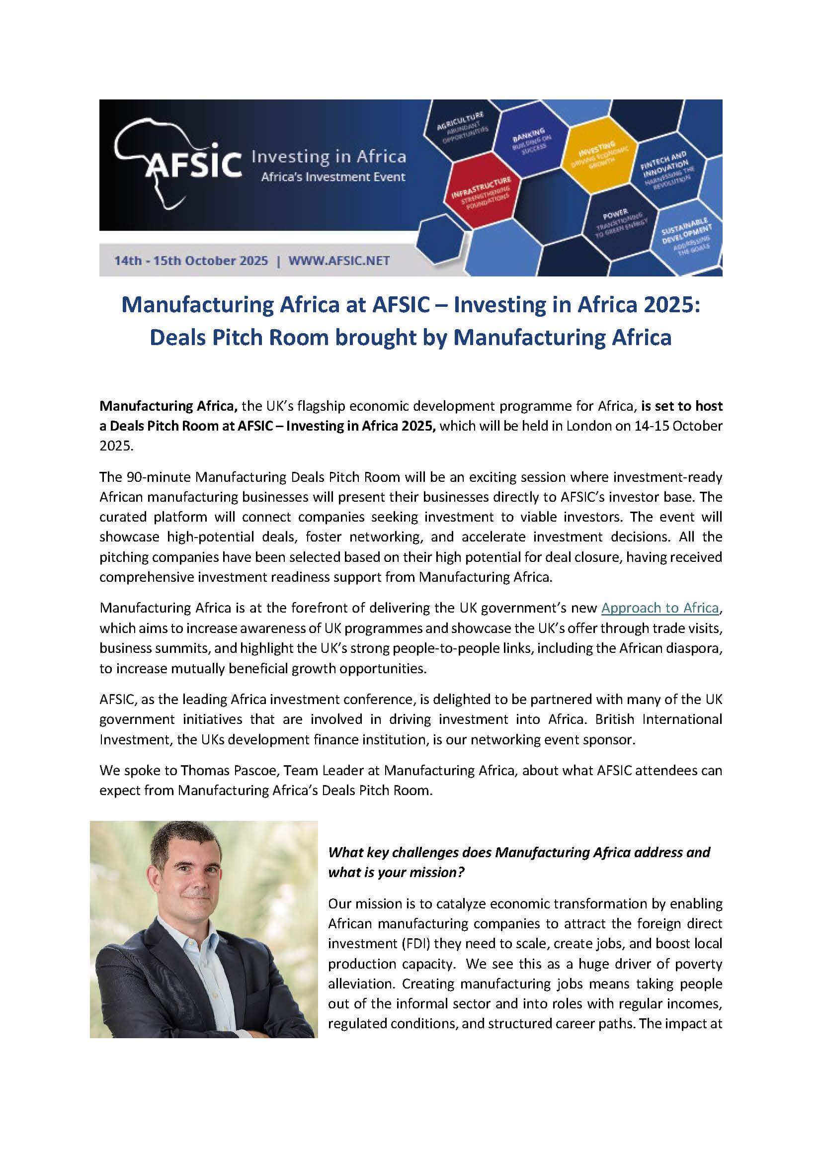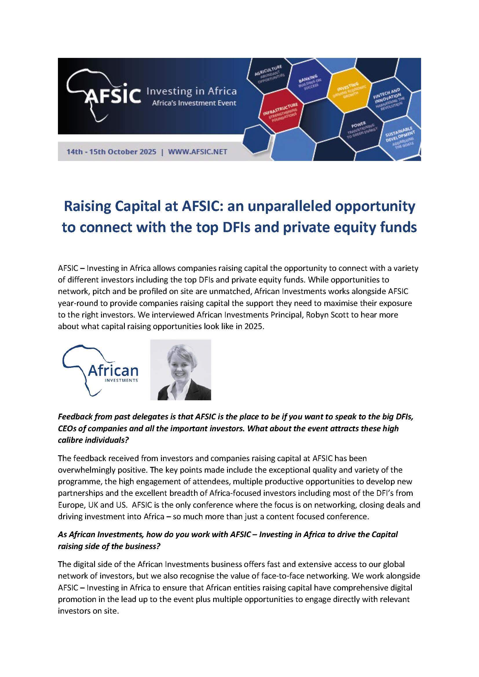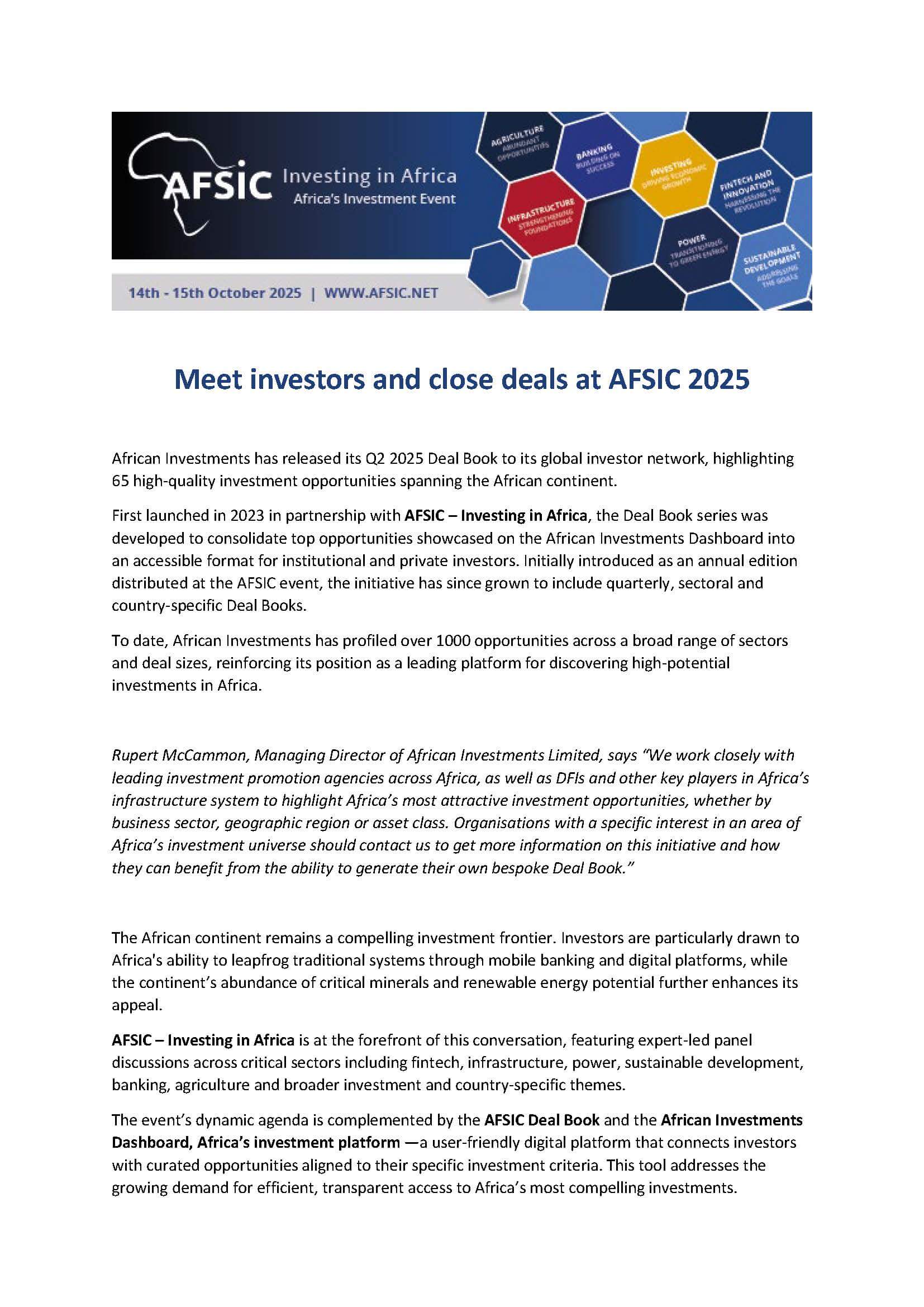 AFSIC – Investing in Africa Returns to London on October 14–15, 2025