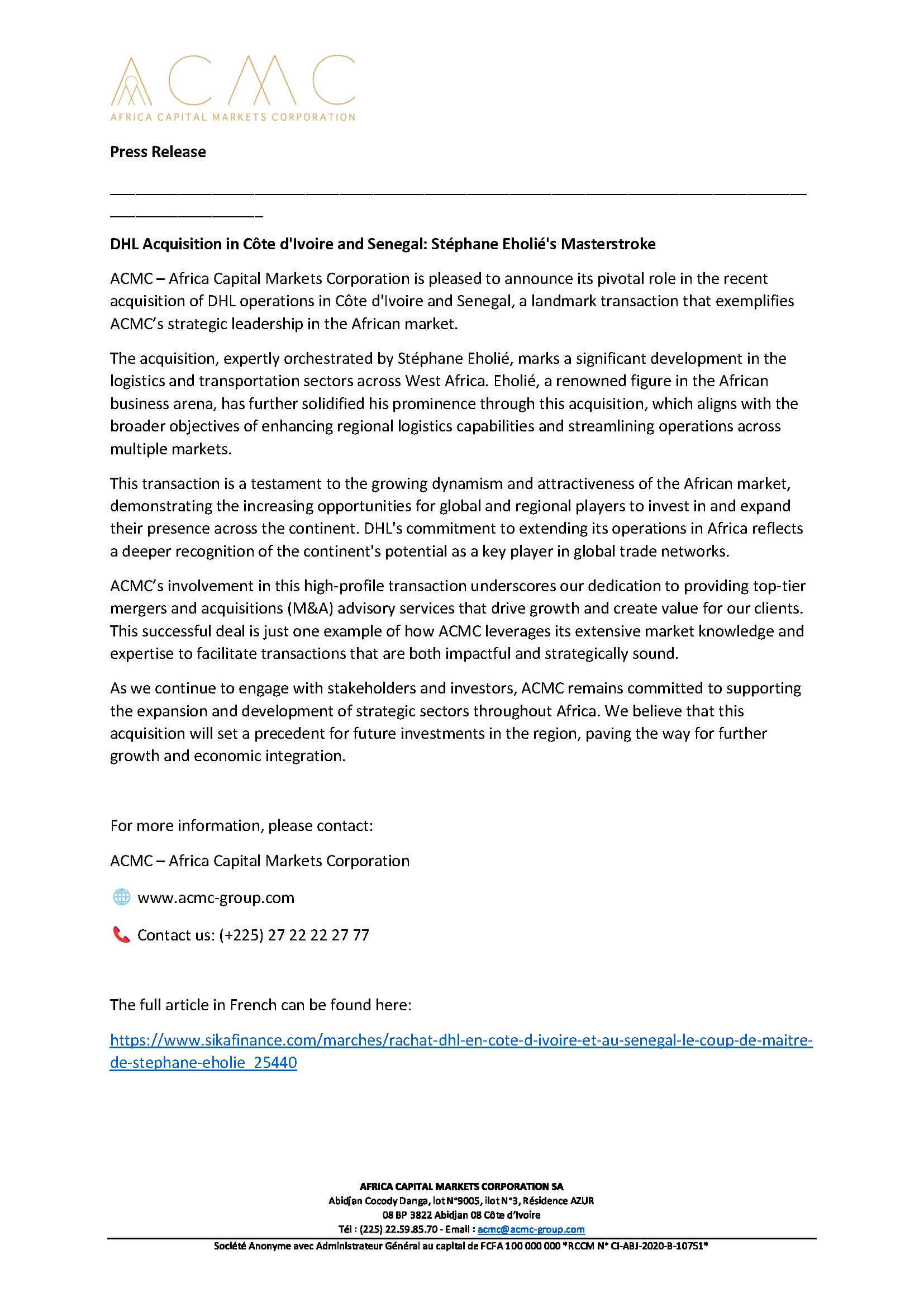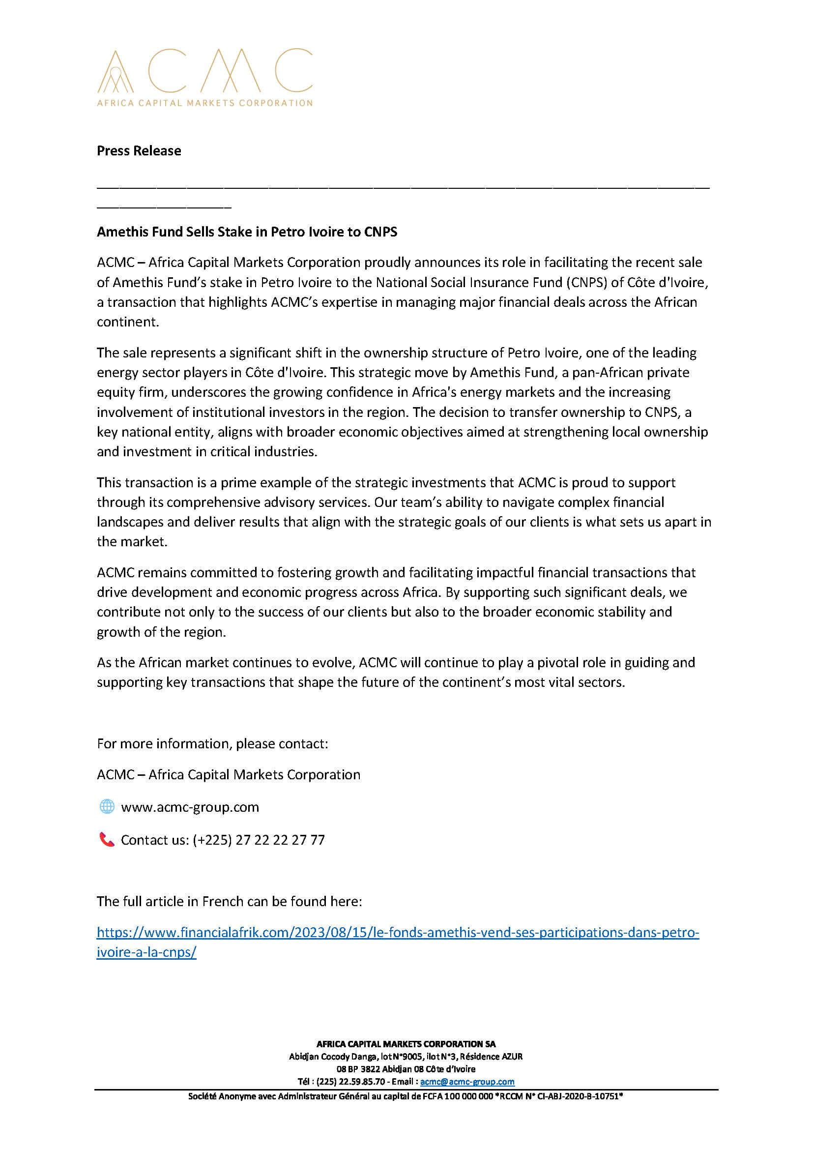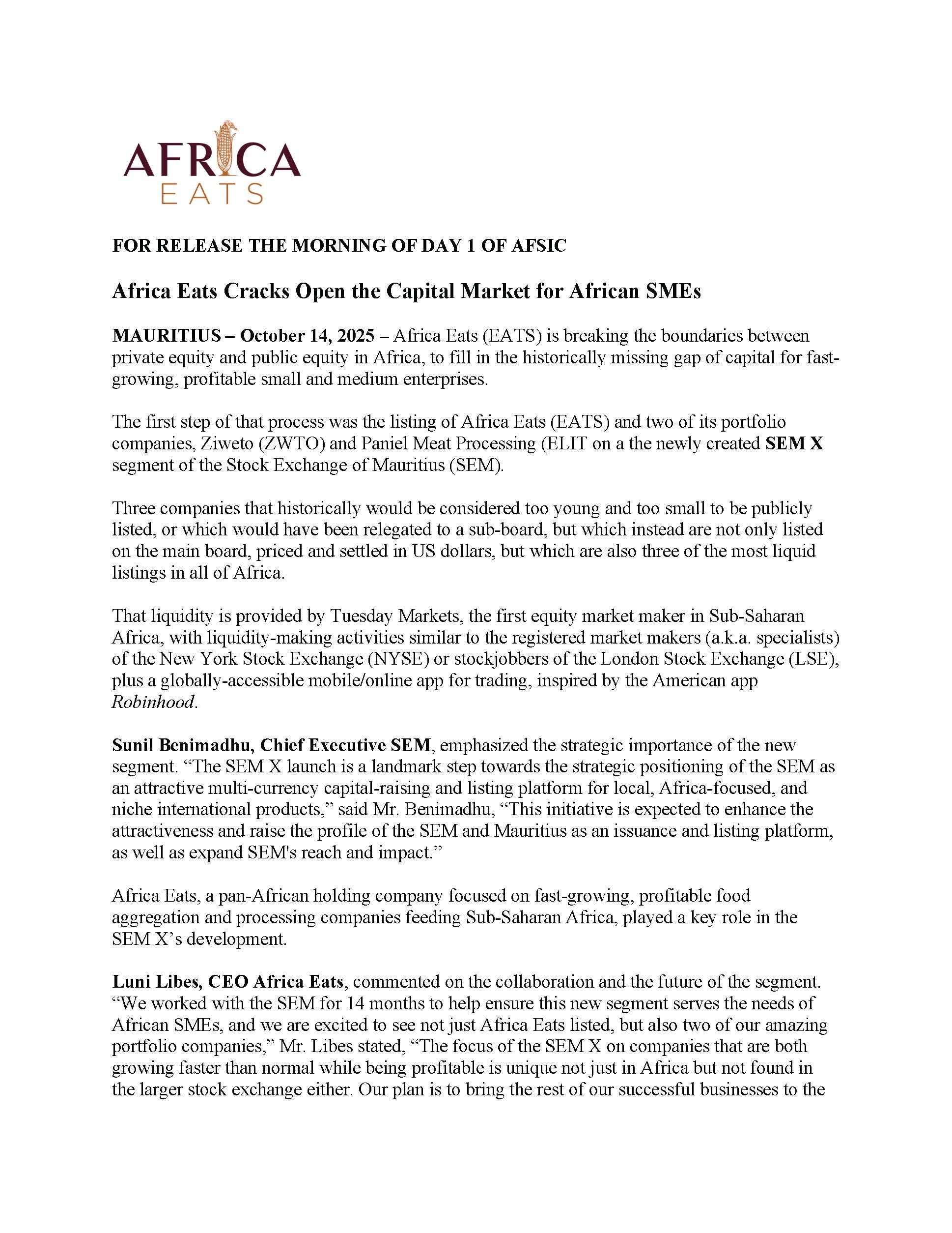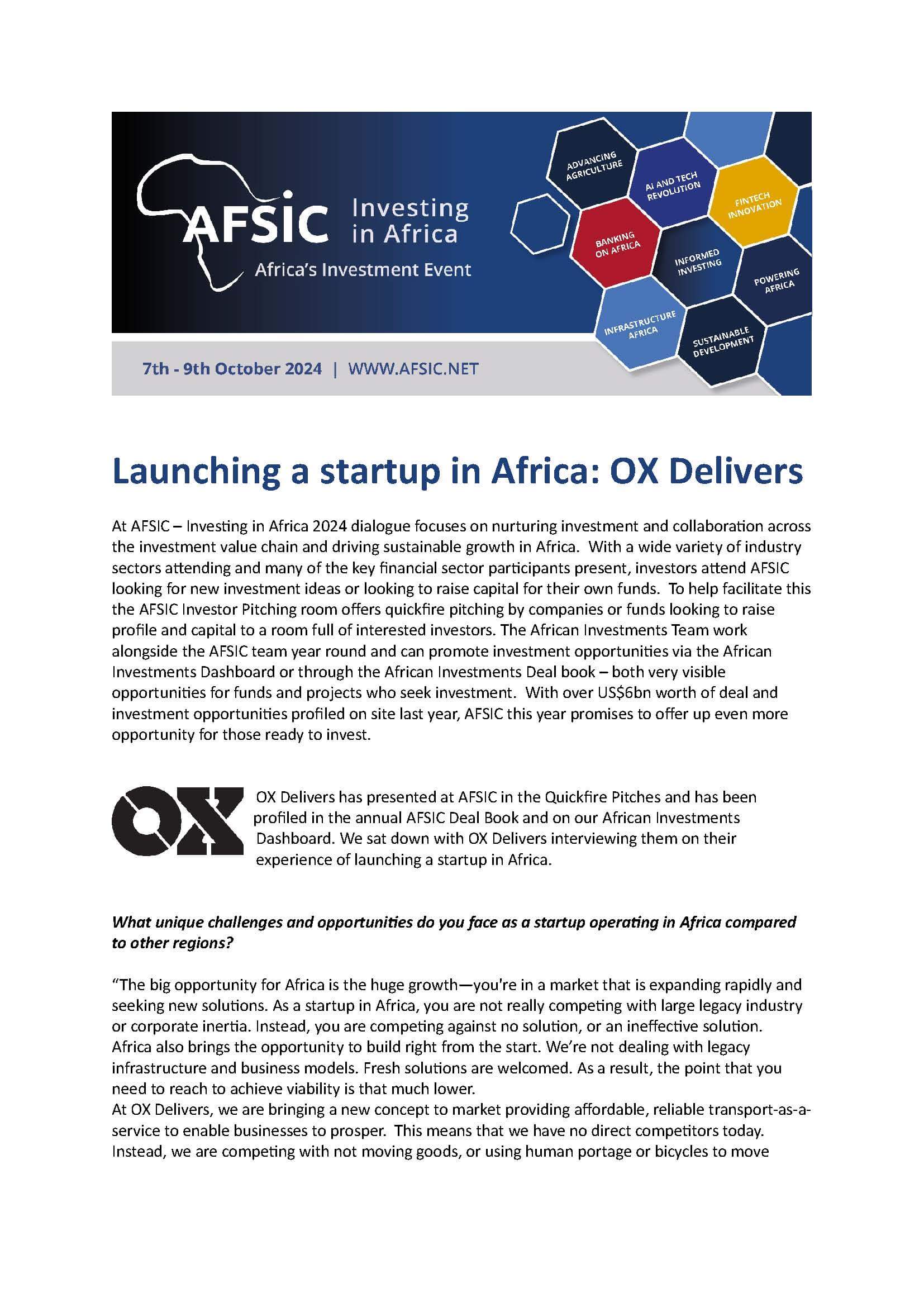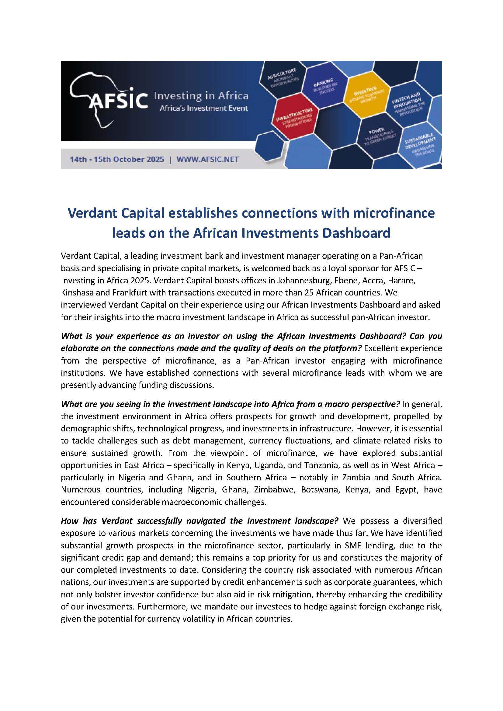 A collection of press releases from our Sponsors and all current news relating to AFSIC – Investing in Africa.